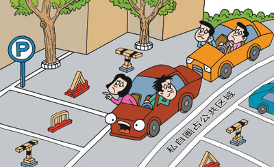 “有人亂停亂放,綠茵茵的草坪都被破壞了,露出裸露的泥土,真令人心痛!”江蘇蘇州市讀者葉英麗曾在姑蘇區(qū)解放路發(fā)現(xiàn)私家車停在草坪上;河北衡水市讀者楊柳明反映,有市民長時間占用自行車道停車,影響交通秩序;“一些車主瞅上了健身場地,在健身器材間見縫插針地停車,雖然心里不滿,但因為大都是熟人,也不好意思說,只好‘啞巴吃黃連’。”河南扶溝縣讀者張會麗說。