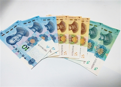 中國人民銀行發(fā)行的2019年版第五套人民幣(部分)。