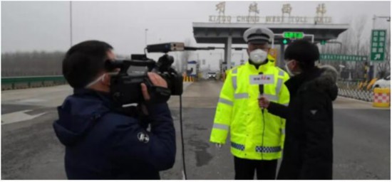 河南省項(xiàng)城市融媒體中心記者在高速路口采訪