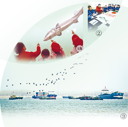 圖①:在中國(guó)水產(chǎn)科學(xué)研究院長(zhǎng)江水產(chǎn)研究所荊州太湖中華鱘保育基地,小學(xué)生正學(xué)習(xí)了解中華鱘的習(xí)性。