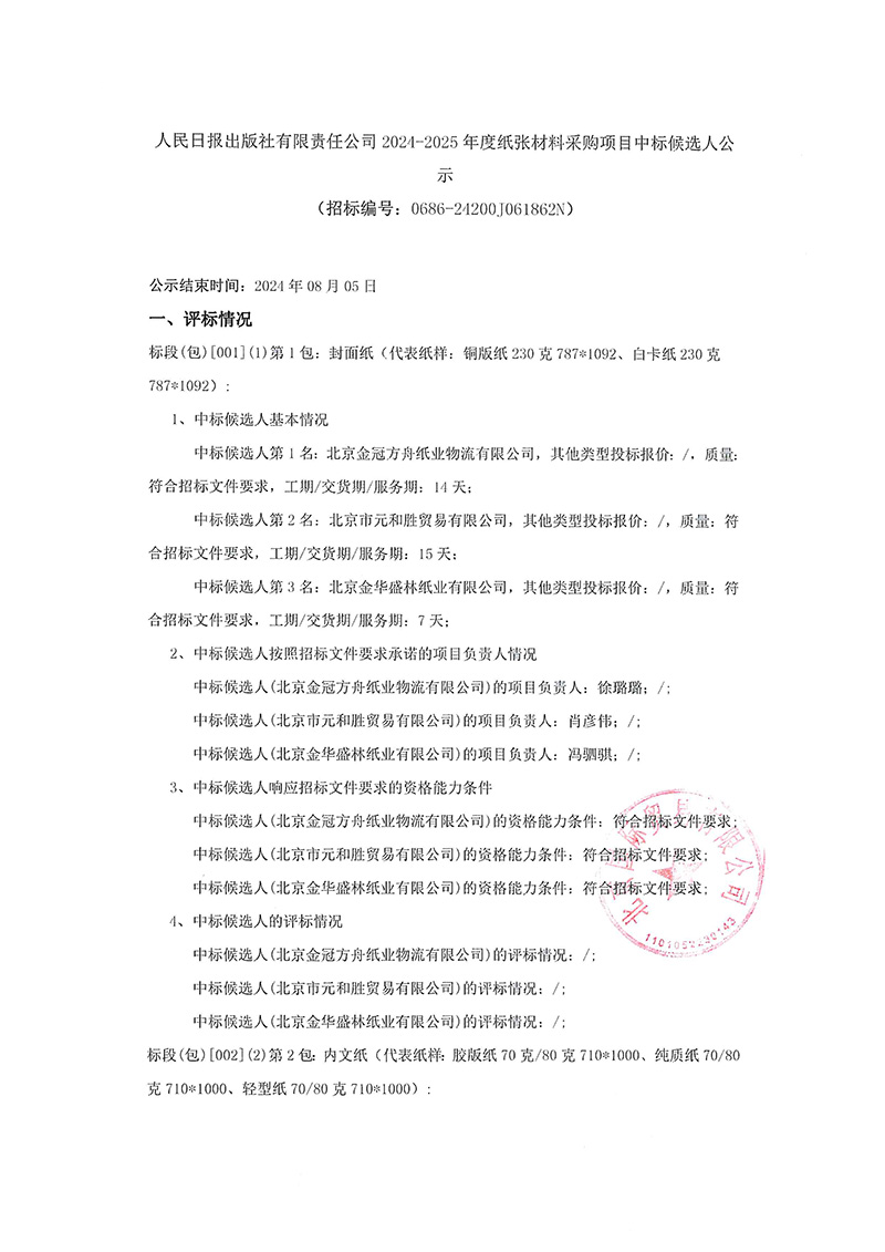 上一篇:人民日報出版社有限責(zé)任公司2024-2025年度紙張材料采購項目公開招標(biāo)公告