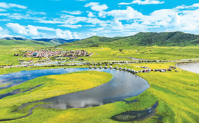 在四川省阿壩藏族羌族自治州,若爾蓋國家公園紅原大草原綠草如茵。 嚴(yán)易程攝(人民視覺) |