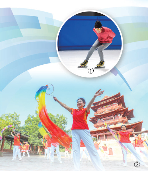 圖①:內(nèi)蒙古呼和浩特體育中心綜合體育館,老年“冰迷”在室內(nèi)冰場(chǎng)滑冰。