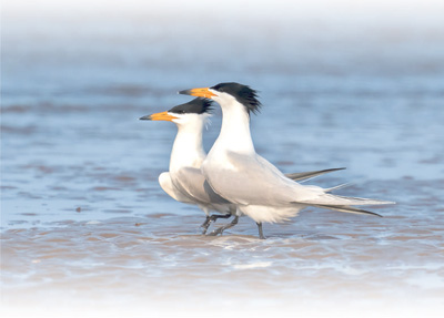 福建省福州市長(zhǎng)樂區(qū)閩江河口濕地,中華鳳頭燕鷗在嬉戲覓食。