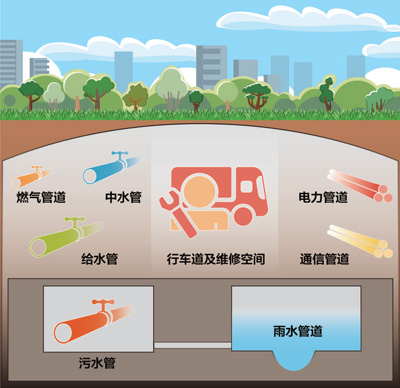 “區(qū)別于原先市政管線直埋的方式,地下綜合管廊是在城市道路下方建造一條公共廊道,用于容納市政、電力、通信、廣播電視、燃?xì)?、熱力、給排水等多種管線構(gòu)造物及其附屬設(shè)備。”李坤煌介紹,“從直埋到建設(shè)管廊,不僅避免了管線維修時道路開挖的麻煩,還能讓管線避免日曬雨淋,延長使用壽命。遇到問題,我們運維員也方便及時搶修。”