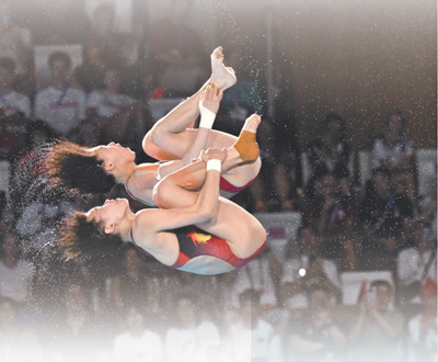 當?shù)貢r間7月31日,中國體育代表團選手陳芋汐(后)/全紅嬋在巴黎奧運會跳水女子雙人十米臺決賽中。