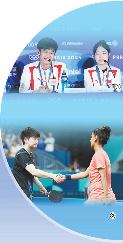 圖①:當(dāng)?shù)貢r(shí)間7月27日,黃雨婷(右)和盛李豪在賽后新聞發(fā)布會上。