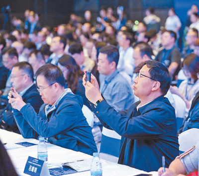 2024中國新媒體大會內(nèi)容創(chuàng)新論壇現(xiàn)場,參會者在聽會。