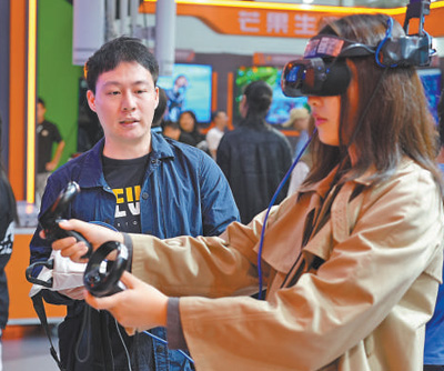 2024中國新媒體技術(shù)展上,參觀者在進(jìn)行AR互動體驗。