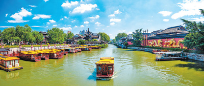 乘船而行,南京夫子廟文化旅游集團總經(jīng)理劉晶晶介紹,桃葉渡是“十里秦淮”水上游覽線東五華里的精華所在。當經(jīng)過秦淮兩岸的朱雀橋、桃葉渡,以及江南貢院、白鷺洲公園、東水關(guān)時,畫舫推開碧水,凌波蕩漾,這些古地名不再只是文人墨客筆下遙遠的傳說,而是成為眼前流淌著詩情畫意的醉人景象。