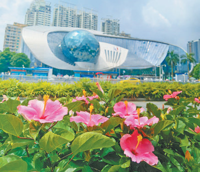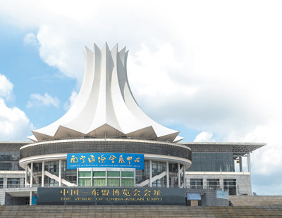 位于廣西南寧青秀區(qū)的南寧國際會展中心,朱槿花造型的建筑引人注目。