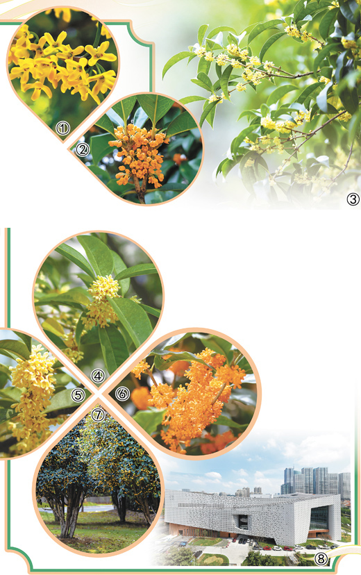 圖④、圖⑤:位于合肥的安徽大學(xué)磬苑校區(qū),桂花盛開(kāi),香氣馥郁。