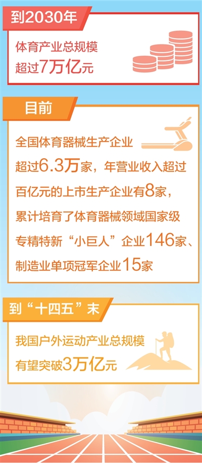 《意見(jiàn)》提出,到2030年,體育產(chǎn)業(yè)總規(guī)模超過(guò)7萬(wàn)億元,培育一批具有世界影響力的體育企業(yè)和體育賽事。國(guó)家體育總局副局長(zhǎng)李靜表示,《意見(jiàn)》總體發(fā)展目標(biāo)清晰,圍繞高質(zhì)量主題,做強(qiáng)體育消費(fèi)市場(chǎng),夯實(shí)產(chǎn)業(yè)發(fā)展基礎(chǔ),為適應(yīng)體育產(chǎn)業(yè)發(fā)展新趨勢(shì)作出新部署。強(qiáng)調(diào)切實(shí)增強(qiáng)產(chǎn)業(yè)發(fā)展的內(nèi)生動(dòng)力,為體育消費(fèi)持續(xù)擴(kuò)大提供堅(jiān)實(shí)基礎(chǔ),為推動(dòng)體育產(chǎn)業(yè)高質(zhì)量發(fā)展提供持久動(dòng)力。