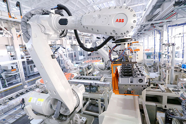 玉柴智慧工廠生產(chǎn)車間里,機(jī)械臂精準(zhǔn)揮舞。(資料圖)