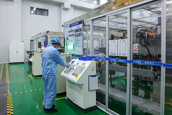 廣西華創(chuàng)生箔崗位技術(shù)人員輸入生箔工藝、自動檢測參數(shù)。(資料圖)