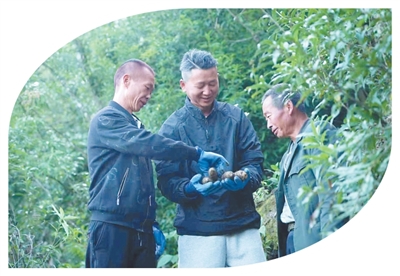 北海鎮(zhèn)打苴村黨員干部察看林下天麻采收情況。