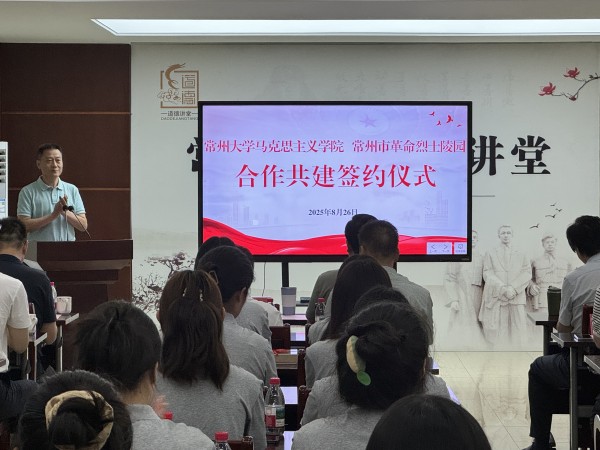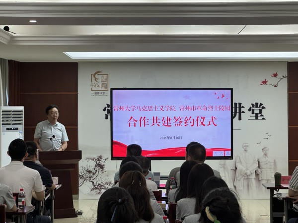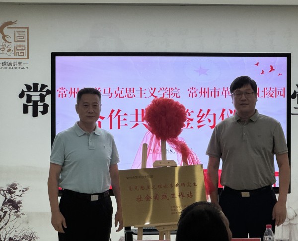 在常州市革命烈士陵園會(huì)議室里,在常州市革命烈士陵園副主任李蕓的主持下,常州大學(xué)馬克思主義學(xué)院與常州市革命烈士陵園共同舉辦“馬克思主義理論專(zhuān)業(yè)研究生社會(huì)實(shí)踐工作站”共建簽約儀式。常州市革命烈士陵園主任許九欽與常州大學(xué)馬克思主義學(xué)院院長(zhǎng)劉曉華教授共同簽署《社會(huì)實(shí)踐合作協(xié)議》,常州市退役軍人事務(wù)局副局長(zhǎng)果怡清與常州大學(xué)黨委常委、宣傳部部長(zhǎng)薛冰為“社會(huì)實(shí)踐工作站”揭牌。此外,許九欽為2025級(jí)碩士研究生頒發(fā)了“常州三杰班”班旗。常州市革命烈士陵園向30名碩士研究生分別贈(zèng)送了《常州三杰》《常州烈士事跡匯編》等史料書(shū)籍。