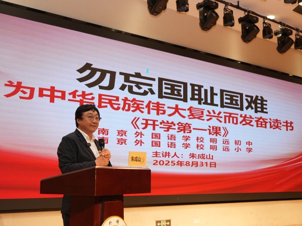 8月31日上午,中國(guó)抗日戰(zhàn)爭(zhēng)史學(xué)會(huì)原副會(huì)長(zhǎng)、侵華日軍南京大屠殺遇難同胞紀(jì)念館原館長(zhǎng)、常州大學(xué)紅色文化研究院院長(zhǎng)朱成山教授,應(yīng)邀為南京外國(guó)語(yǔ)學(xué)校明遠(yuǎn)初中、明遠(yuǎn)小學(xué)等20多所中小學(xué)校和南京航空航天大學(xué)的部分大學(xué)生帶來新學(xué)期第一堂思想政治理論課,題目為《勿忘國(guó)恥國(guó)難——為中華民族偉大復(fù)興而發(fā)奮讀書》。