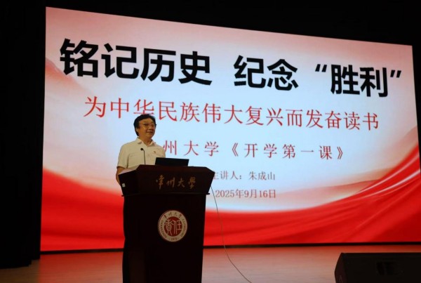 當(dāng)晚,朱成山在常州大學(xué)西太湖校區(qū)大禮堂為2025級新生帶來“開學(xué)第一課”。朱成山以“銘記歷史,紀念‘勝利’——為中華民族偉大復(fù)興而發(fā)奮讀書”為主題,從“《開學(xué)第一課》節(jié)目介紹”“銘記歷史——南京大屠殺的真相”“緬懷先烈——中國人民的抗?fàn)幘?rdquo;“珍愛和平——為中華民族偉大復(fù)興而發(fā)奮讀書”四個視角展開論述。