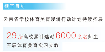 通過體育美育浸潤行動計(jì)劃,云南已從全省高校選派6000余名師生,定向幫扶薄弱地區(qū)中小學(xué),積極參與受幫扶學(xué)校的體育、音樂、美術(shù)等學(xué)科教學(xué),讓鄉(xiāng)村孩子也能享受到優(yōu)質(zhì)的體育美育教育,全面提升綜合素質(zhì)。