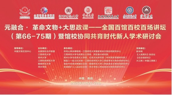 10月27日至29日,“元融合·革命文物+大思政課——全國百館百校百場講壇(第66-75期)暨館校協(xié)同共育時代新人學(xué)術(shù)研討會”在江西師范大學(xué)召開。來自全國23個?。ㄗ灾螀^(qū)、直轄市)革命紀(jì)念館、高校的100多位專家學(xué)者參加交流研討。