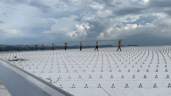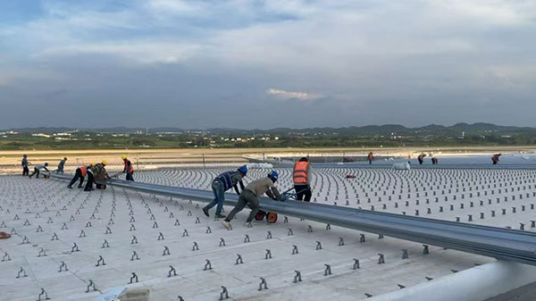 南寧吳圩國際機場T3航站樓改擴建屋面工程,建筑面積約30.5萬平方米,金屬屋面工程是機場建筑的“防護屏障”,施工難度大,是一項工程硬仗。
