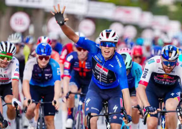 10月19日,2025環(huán)廣西公路自行車世界巡回賽(簡(jiǎn)稱“2025環(huán)廣西世巡賽”)在南寧圓滿落幕。此前已拿下4個(gè)賽段冠軍、來(lái)自速的奧-快步車隊(duì)的保羅·馬尼耶在沖刺中拿下他在本屆賽事上的第五勝,成功創(chuàng)造新紀(jì)錄。但總冠軍則歸屬于杰科-埃爾奧拉車隊(duì)的保羅·達(dá)博。科菲迪斯車隊(duì)的斯坦尼斯勞·阿尼奧科夫斯基和安盟FDJ車隊(duì)的保羅·佩諾分獲本賽段二、三名。