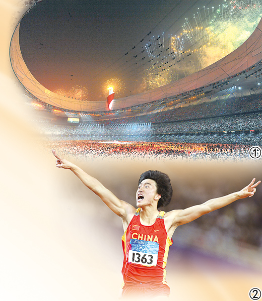 圖②:2004年雅典奧運(yùn)會(huì),劉翔在男子110米欄比賽中奪冠。