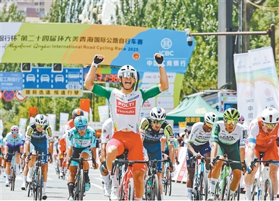 7月13日上午,李寧之星車隊(duì)車手謝爾比·亞歷山大從賽道右側(cè)加速超越對手,在青海省海晏縣西海鎮(zhèn)現(xiàn)場觀眾的歡呼聲中沖線,奪得了本屆環(huán)青賽第八賽段(同寶山繞圈賽)的冠軍。至此,第二十四屆環(huán)青賽落幕。