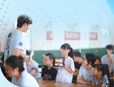 湖南懷化通道侗族自治縣萬佛山鎮(zhèn)木腳村,支教大學(xué)生在給孩子們上人工智能實驗課。