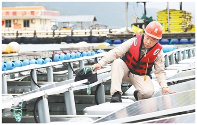 陳思偉在福建寧德市三都澳海域檢查海上光伏設施。