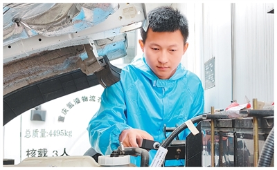 蔡開南檢查氫能源汽車氫氣管道密封情況。