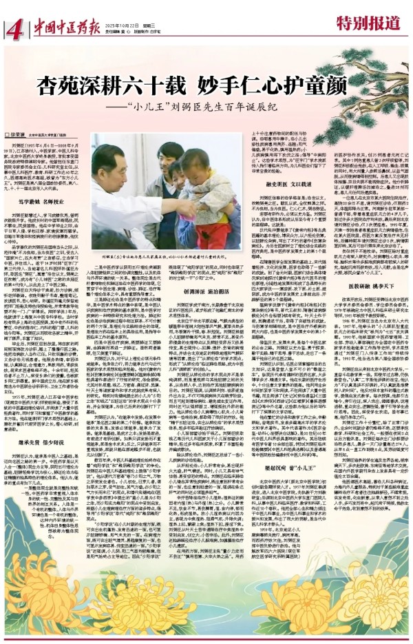 杏苑深耕六十載,妙手仁心護(hù)童顏!“小兒王”劉弼臣先生百年誕辰紀(jì)