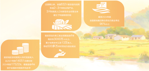 脫貧勞動(dòng)力務(wù)工就業(yè)規(guī)模連續(xù)4年穩(wěn)定在3000萬人以上;累計(jì)培育鄉(xiāng)村工匠13萬余人,帶動(dòng)500多萬農(nóng)村勞動(dòng)力創(chuàng)業(yè)就業(yè)……脫貧群眾自我發(fā)展能力不斷增強(qiáng),從政策的“受益者”轉(zhuǎn)變?yōu)榘l(fā)展的“貢獻(xiàn)者”,從被動(dòng)接受“輸血”轉(zhuǎn)變?yōu)橹鲃?dòng)增強(qiáng)“造血”功能,鞏固拓展脫貧攻堅(jiān)成果有了堅(jiān)實(shí)的基礎(chǔ),鄉(xiāng)村全面振興有了澎湃的動(dòng)力。