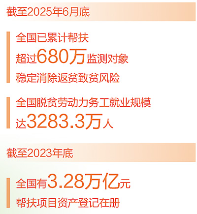 防止返貧動(dòng)態(tài)監(jiān)測幫扶機(jī)制是鞏固拓展脫貧攻堅(jiān)成果最基本的制度安排。這幾年,各地建立健全防止返貧致貧動(dòng)態(tài)監(jiān)測幫扶機(jī)制,截至6月底,全國已累計(jì)幫扶超過680萬監(jiān)測對(duì)象穩(wěn)定消除返貧致貧風(fēng)險(xiǎn),義務(wù)教育、基本醫(yī)療、住房安全和飲水安全保障水平得到鞏固提升。