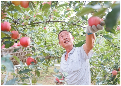 永鄉(xiāng)鎮(zhèn)西安宮村果農(nóng)車建設的果園里,十幾個村民分工協(xié)作,采摘、裝筐、搬運,忙得不亦樂乎。“近幾年,鎮(zhèn)上推廣了‘矮化密植’新樹形,果樹好管理,還高產(chǎn),用上了測土配方施肥等技術,果子又大又勻稱。”看著滿樹碩果,車建設喜笑顏開,“我的4畝果園,套了8萬個袋,預計能產(chǎn)2.5萬斤果子。果子質(zhì)量好,賣得俏,今年又是一個豐收年!”