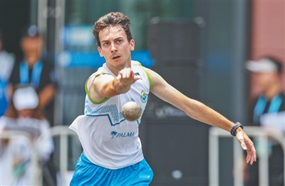 斯洛文尼亞隊(duì)運(yùn)動(dòng)員在大金屬地?cái)S球混合雙人連續(xù)拋擊資格賽預(yù)賽中。
