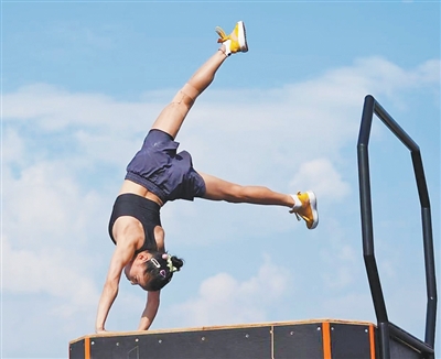 中國(guó)隊(duì)運(yùn)動(dòng)員商春松在跑酷女子自由式?jīng)Q賽中。