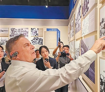 格林參觀飛虎隊(duì)與中國抗戰(zhàn)歷史圖片展。