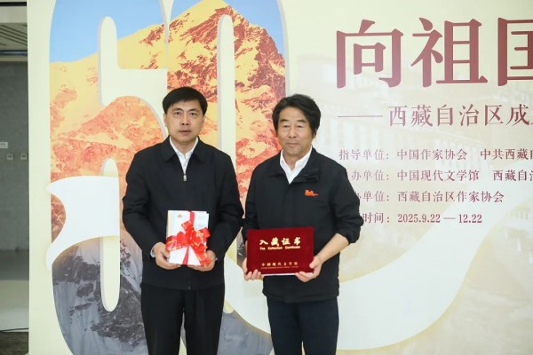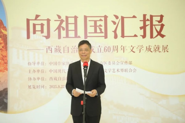 汪海洲表示,“向祖國匯報——西藏自治區(qū)成立60周年文學(xué)成就展”是西藏自治區(qū)成立60年來第一次在京舉辦的文學(xué)類展覽,旨在全景展現(xiàn)西藏文學(xué)及廣大作家深入踐行習(xí)近平文化思想,在時代發(fā)展中堅持傳統(tǒng)與現(xiàn)代、敘事與抒情相結(jié)合,為人民書寫、為人民放歌的美好景象,展現(xiàn)西藏60年來文學(xué)創(chuàng)作的輝煌成績。此次展覽承載著西藏作家對黨和國家的赤子之心,凝聚著雪域兒女對中華文化的熱愛,為展示社會主義現(xiàn)代化新西藏的良好形象發(fā)揮了積極作用。希望廣大作家以鑄牢中華民族共同體意識、推進(jìn)中華民族共同體建設(shè)為主線,從各族干部團(tuán)結(jié)一心、努力拼搏建設(shè)社會主義現(xiàn)代化新西藏的火熱實踐中汲取養(yǎng)分,用文學(xué)的表達(dá)講好新時代新西藏的故事,推出更多無愧于時代、無愧于人民的優(yōu)秀文學(xué)作品。