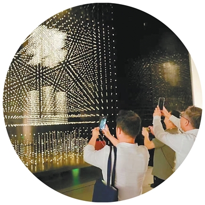 游客參觀玉架山考古博物館內(nèi)的“茅山”藝術(shù)裝置。