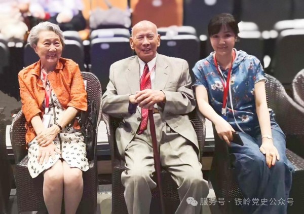 高一然 (左三) 與周恩來侄女周秉德 (左一)、黃埔軍校同學(xué)會會長林上元 (左二) 在周恩來紀(jì)念會場上合影。