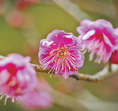古都南京的早春,總是從東郊梅花山的枝頭開(kāi)始綻放。風(fēng)還透著寒意,但幾朵“粉紅朱砂”卻悄然掛上枝頭,在風(fēng)中輕輕搖曳。