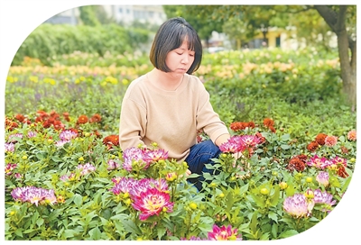 包頭市園林科研所的花圃中,吳曉靜在查看小麗花生長(zhǎng)狀況。