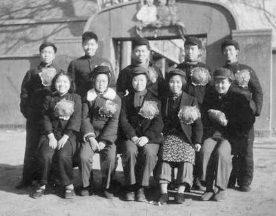 黃會林(前排左二)參軍入伍時,與同學們的合影。