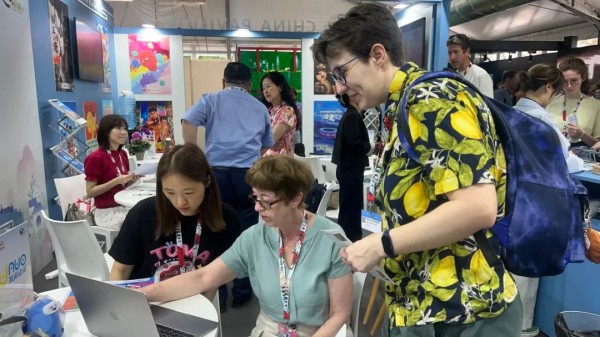 活動期間,中國聯(lián)合展臺通過高清展播、打卡互動區(qū)全方位展示作品。高清大屏上,精彩紛呈的中國動畫作品輪番播放。生動的角色、引人入勝的劇情,吸引了許多觀眾駐足觀看。觀眾們或凝神欣賞,或熱烈討論,或與自己喜愛的動畫角色合影留念……沉浸在精彩動畫的世界里。一部以家庭旅行視角展現(xiàn)當代中國發(fā)展與文化的動畫作品引發(fā)了現(xiàn)場觀眾的共鳴。觀眾透過動畫作品,看到了一個既古老又充滿活力的中國,對中國的歷史、自然與人文之美贊不絕口。
