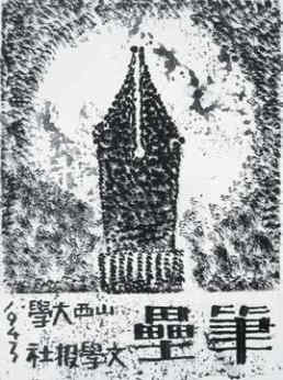 思想的覺醒很快有了實(shí)踐的機(jī)會(huì)。山西大學(xué)社團(tuán)與劇宣二隊(duì)常常開展座談,在劉正言的引薦下,趙梅生承擔(dān)了為山西大學(xué)文學(xué)院大型系列壁報(bào)《筆壘》繪制報(bào)頭的工作。他傾注心血,構(gòu)思出一幅極具戰(zhàn)斗性的畫面:一支巨大的鋼筆,其銳利的筆尖被設(shè)計(jì)成寒光閃閃的槍頭形狀,筆的底座則用堅(jiān)實(shí)的線條層層壘砌,筆尖發(fā)出光芒。這個(gè)設(shè)計(jì)巧妙點(diǎn)題——“筆壘”,既是文人揮毫的陣地(筆陣),更是文化抗戰(zhàn)、抵御外侮的精神堡壘(戰(zhàn)壘)。這是趙梅生第一次明確地用畫筆作為武器,參與到抗擊侵略、喚醒民眾的文化戰(zhàn)斗中來。劉正言點(diǎn)燃的思想火種,加上《筆壘》報(bào)頭的成功實(shí)踐,徹底改變了趙梅生。他不再是那個(gè)只求活命的逃亡少年,也不再僅僅是教孩子們畫畫的老師。他組織教養(yǎng)院的孩子們畫抗戰(zhàn)壁報(bào),與第一、第二兒童教養(yǎng)院比賽,用圖畫宣傳抗戰(zhàn)。他深刻認(rèn)識(shí)到藝術(shù)的價(jià)值,在于用它來凝聚不屈的精神,為破碎的山河吶喊。