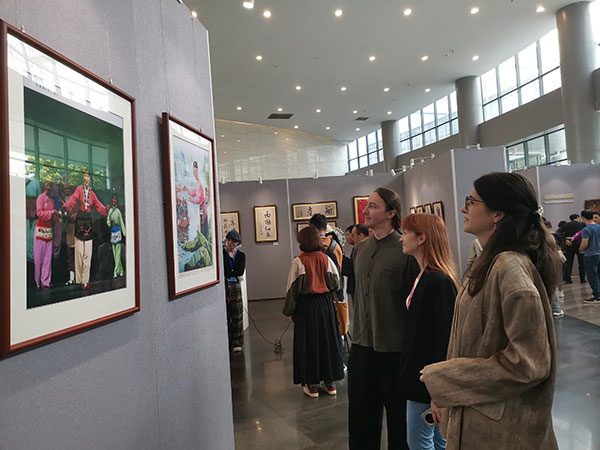 東盟國(guó)家友人在參觀劉三姐文化展覽。