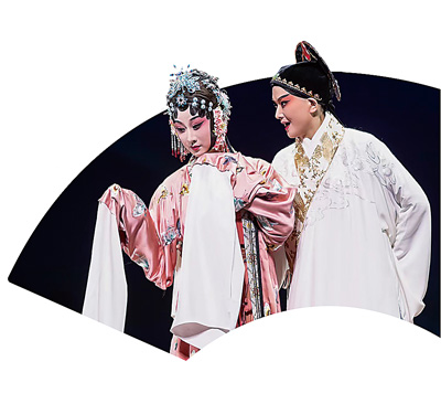 圖片由上至下分別為昆劇《牡丹亭》(全本)、音樂劇《尋找李二狗》、話劇《煙火人間》、舞劇《紅樓夢》劇照。