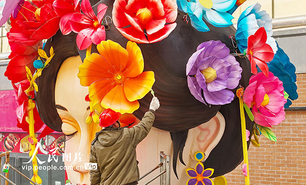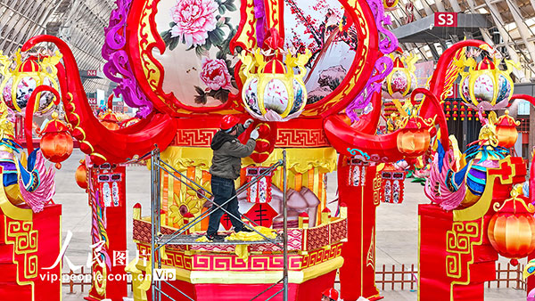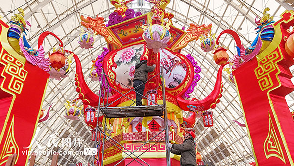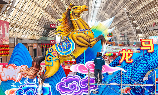 春節(jié)臨近,位于山東青島西海岸新區(qū)的中鐵青島世界博覽城內(nèi),來自四川自貢的工匠們在精心制作和組裝大型燈組,迎接即將開幕的馬年燈會。